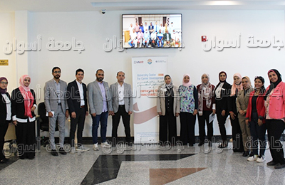 وكان فى إستقبال وفد كلية التربية النوعية الدكتور/ محمد شوقى الموافى- مدير مركز أورام أسوان- الذى قدّم تعريفًا بأهم أقسام المركز والخدمات التى يُقدّمها لجمهور المرضى.