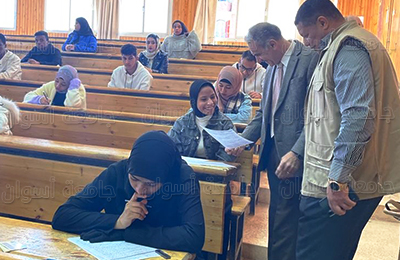 فى ضوء توجيهات الأستاذ الدكتور/ أيمن محمود عثمان- رئيس جامعة أسوان- بمتابعة إمتحانات الفصل الدراسى الأول للعام الجامعى ٢٠٢٣/٢٠٢٢م. قام الدكتور/ لؤى سعد الدين نصرت -نائب رئيس الجامعة لشئون التعليم والطلاب -بجولة تفقدية لمتابعة أعمال الإمتحانات بكلية التجارة، برفقة الدكتور/ حسن أمين الشقطى- عميد الكلية- ووكلاء الكلية، وذلك للإطمئنان على سير أعمال الإمتحانات، ومتابعة أعمال الإمتحانات بكلية التجارة والتى يؤديها 4200 طالب وطالبة تقريبًا، موزعين على كافة أقسام الكلية وهى إقتصاد، محاسبة، إدارة أعمال من الفرقة الأولى حتى الفرقة الرابعة بشعبتيها عربى وإنجليزى.