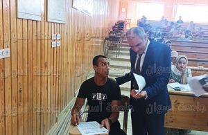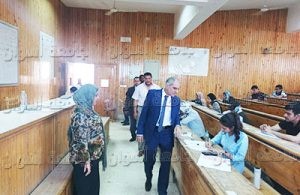 In frame of the directives of Prof. Ayman Mahmoud Othman _ Aswan University President _ in the daily follow-up of the second semester exams for the university faculties; Today, Wednesday, Dr. Loai Saad El-Din Nasrat – Vice President of Aswan University for Education and Student Affairs – made an inspection tour to follow up the examination work at the Faculty of Commerce, accompanied by Dr. Hassan El Shogaty – Dean of Faculty of Commerce – and Dr. Alaa Rizk – Head of Accounting Department at the Faculty – to check on Examination works, which is performed by Faculty students at the level of the four batches, who number approximately 4350 male and female students. Dr. Loai Saad El-Din Nasrat declared that the Examination work is performed in a calm manner and there are no obstacles in the committees, and it proceeds in an atmosphere suitable for all students, with the application of all administrative procedures regulating the exams of the second semester of the academic year 2022/2023,