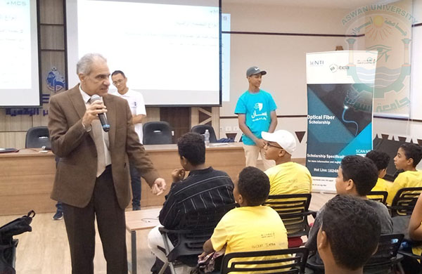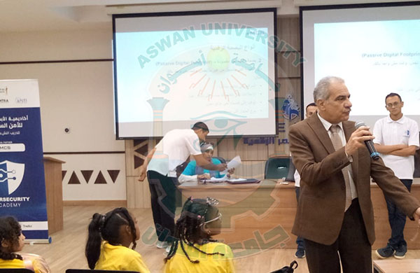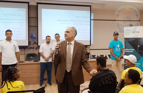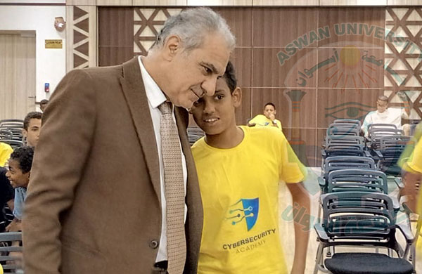 Prof. Loai Saad El-Deen Nasrat, Acting President of Aswan University, witnessed the launch of the Cyber Youth Training Camp at the Digital Egypt Center in Sahari. The camp is being held from July 13 to 17, 2025, as part of fruitful cooperation between Aswan University, the National Telecommunication Institute (NTI), the National Telecommunications Regulatory Authority (NTRA), and EGCERT, under the generous patronage of the Ministry of Communications and Information Technology and the Ministry of Higher Education and Scientific Research.