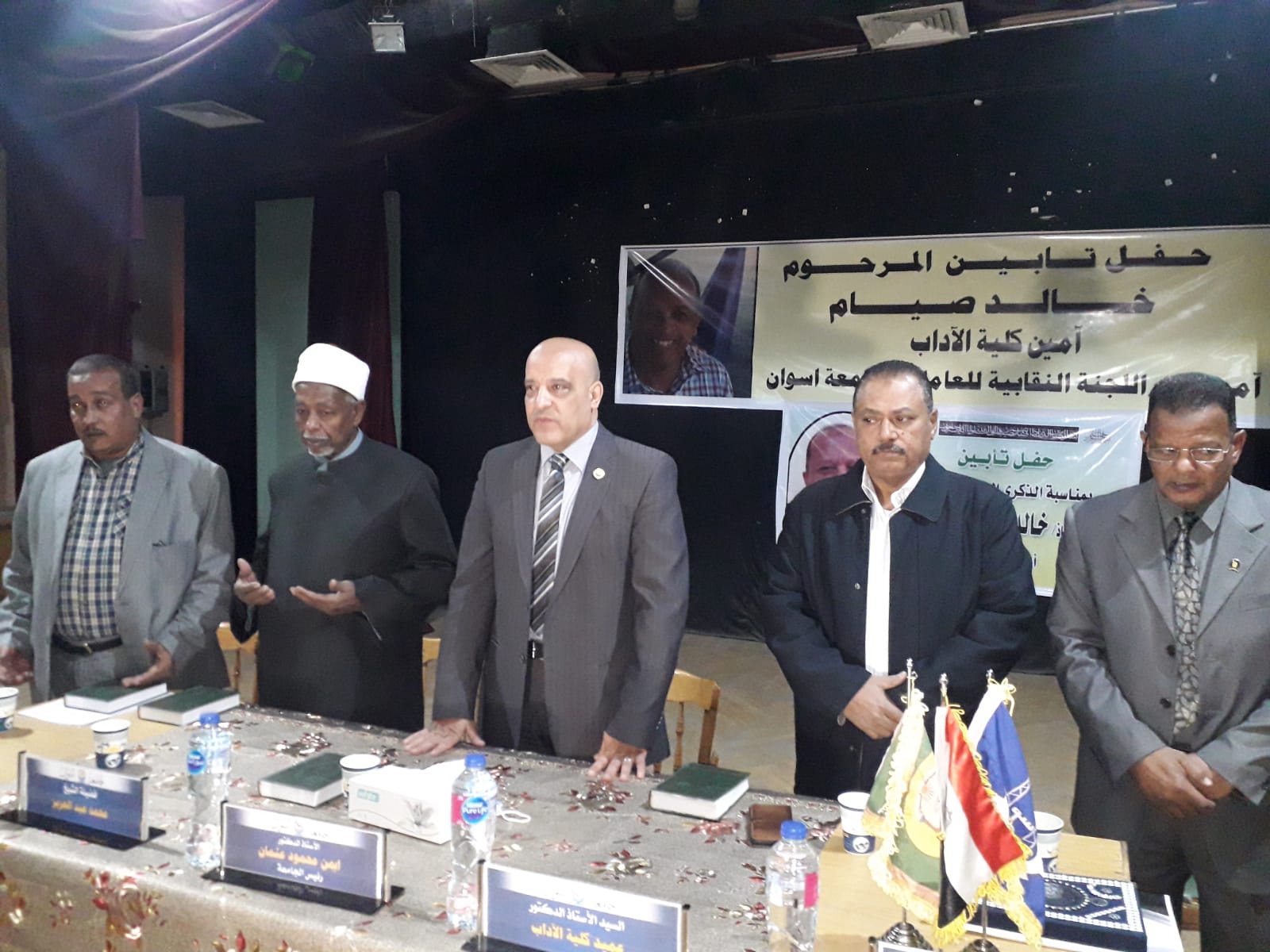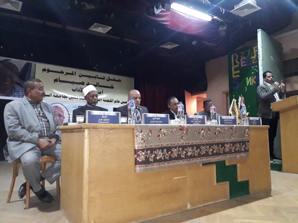 Aswan University employees’ syndicate committee held a memorial for the late Mr. Khaled Seyam, faculty of arts former secretary-general,. The event was witnessed by Aswan university president Prof. Ayman Mahmoud Othman in the presence of a group of faculties deans, vice dean of the faculty of arts, academic staff and their assistants, faculty employees, members of the workers syndicate, His Eminence Sheikh Muhammad Abdel Aziz, former undersecretary of the ministry of endowments, Sheikh Saudy Mansour, ministry of endowment scholar, several university leaders as well as the family of the deceased of Aswan University and the son of the village of West Aswan.