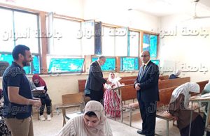 In frame of the directives of Prof. Ayman Mahmoud Othman _ Aswan University President – to follow up the exams of second semester 2022/2023, which are performed by 34 thousand students in various faculties of the university, while providing all means of comfort for students; Dr. Loai Saad El-Deen Nasrat – Vice President of Aswan University for Education and Student Affairs and supervisor of the Faculty of Social Work – inspected the examination committees at the headquarters of Faculty of Social Work in the Sahari campus, accompanied by Dr. Mohamed Sayed Abbas – Vice Dean of Faculty of Social Work for Education and Student Affairs.