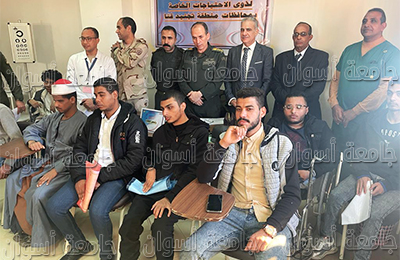 Dr. Mohamed Sobhi indicated that the medical committee commended the medical clinic inside the university campus in the new city of Aswan, with the provision of lists of students of determination. All documents for students were also reviewed, namely: certified fingerprints, 6 personal photos of size 6/4, and the personal card. A valid, recent birth certificate, and the military card 6 soldiers and a model 7 soldiers. This is for all students of the university faculties with special needs. The examination was signed for 52 students, and 14 students were exempted and given a certificate of recovery. A search and inquiry was conducted for 4 students, and the rest of the number was postponed to come to the renewal area. To complete the medical examination in the region after their graduation and obtaining the academic qualification to grant them a certificate of wellness.