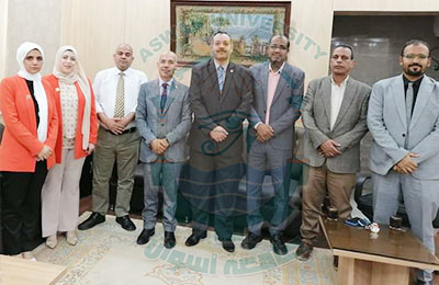 A Committee for Reaccreditation and Renewal of the Training Center at Egyptian Universities, affiliated with the Supreme Council of Universities, Visits the Aswan University Training and Information Technology Center the visit was hosted by Prof. Mohamed Abdelaziz Mehallal, Vice President of the University for Postgraduate Studies and Research, and Prof. Ashraf Imam Abdel-Radi, Executive Director of the Training Center at Aswan University. In attendance of Mr. Tamer Atef Hussein, Deputy Director of the Training Center at the university, and the staff of the Training Unit at Aswan University. The committee included Dr. Mohamed Hassan Jadallah, Director of the Central Training Unit at the Supreme Council of Universities, and his accompanying delegation.
