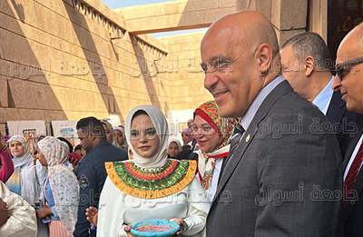 On Wednesday, Prof. Ayman Mahmoud Othman witnessed the activities of the exhibition of ancient technology methods organized by Faculty of Archaeology, Aswan University, to celebrate the 25th anniversary of the opening of the Nubia Museum in Aswan, through the display of products related to heritage and visual identity in Aswan Governorate in cooperation with the Nubia Museum, under the supervision of Dean of Faculty of Archaeology, Dr. Thanaa Abu Talib, and a number of Academic staff and assistants, through the participation of a number of Faculty students.