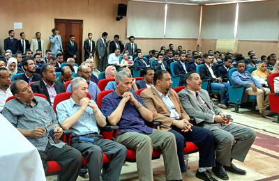 Prof.Ahmed Ghallab.Aswan University President and Prof.Louy Nassert-Dean of Faculty of Engineering and the esteemed Dean of Faculty of Engineering have opened the graduation day for the students of faculty of engineering with its departments (electrical-civil- architectural) , and the day has started with opening speech from university president and the esteemed dean then the events of projects exhibition has started while the numbers of Projects were 23 projects (10 projects of electrical department-10 projects of civil department-3projects of architectural department ) .