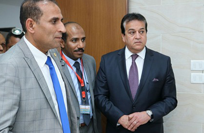 Yesterday corresponding to the 3rd of March 2018, the minister of higher education and scientific research Prof. Khaled Abd Al-Ghaffar has visited Aswan university and its hospitals accompanied by Aswan university president Prof. Ahmed Ghallab, the vice president of graduate studies and research Prof. Ayman Othman, the vice president of community service and environmental development Prof. Ahmed Sayed Khalil, the vice president of education and student’s affairs Prof. Hanan Abd Al-Moneam, the university previous president Prof. Mansour Kabbash,  Dr. Hussin Al-Sherif, the university hospitals manager Dr. Abd Allah Al- Eibeidy, faculties deans and some of university leaders. He has inaugurated the dialysis unit, the magnetic resonance unit, the dental clinic, 9 operating rooms with uni-capsule system asserting that the dialysis unit which includes 56 beds and a dialysis equipment in addition to the old dialysis department is considered a medical surge and that Aswan university will be supported to continue the developments.