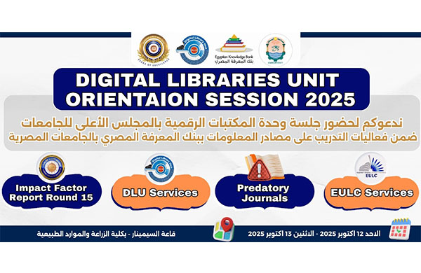 The organization of these training workshops comes as part of Aswan University’s efforts to spread knowledge awareness and maximize the benefit from the services of the Egyptian Knowledge Bank, contributing to raising the level of academic and research performance within the university.