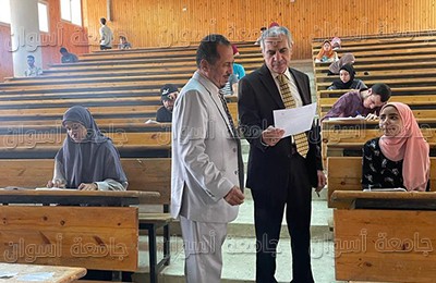 In the frame of the directives of Prof. Ayman Mahmoud Othman – Aswan University President – for daily follow-up the second-semester exams for university faculties; Today, Prof. Loai Saad El-Din Nasrat – Vice President of Aswan University for Education and Student Affairs – made an inspection tour to follow up the examination work in Faculty of Science, which takes place under the supervision of Dr. Abo Al-Hamd Hassan Mohamed – Acting Dean of the faculty – accompanied by Dr. Alaa Hassan Nour El-Din – Vice Dean for Education and Student Affairs – to check on the examinations, which are performed by Faculty students at the level of the four Batches, amid strict procedures to prevent cheating.