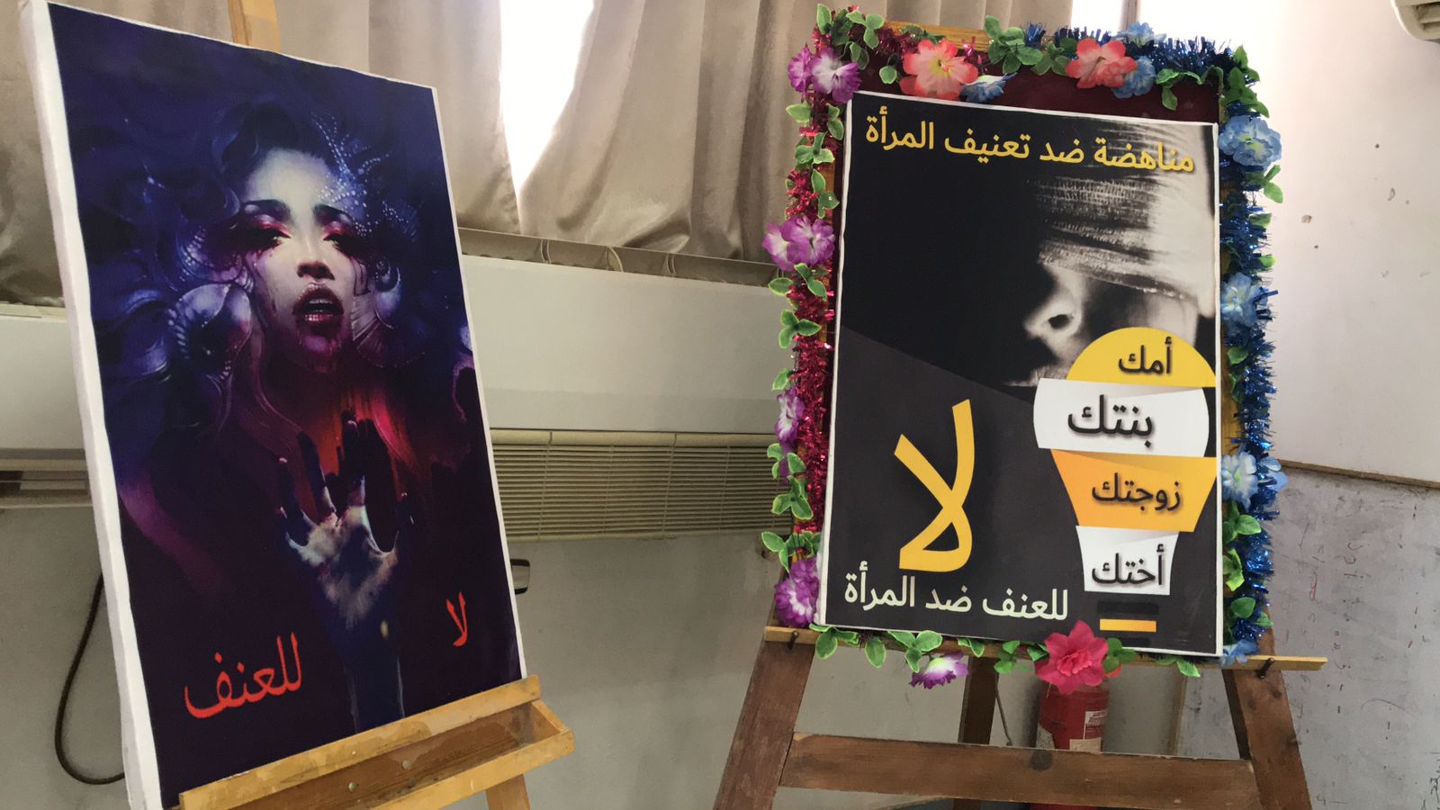 4- An art exhibition illustrating the practices of violence against women in its various forms, prepared by students of Faculties of Education and Specific Education and some university students, under the supervision and coordination of Dr. Sally Hariri.