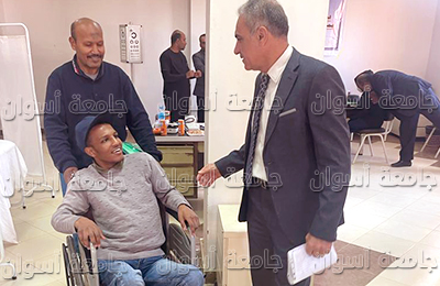 أكّد نائب رئيس الجامعة لشئون التعليم والطلاب أنه إستقلبت الإدارة الطبية بالجامعة اليوم اللجنة الطبية بالحرم الجامعى بمدينة أسوان الجديدة، والتى قامت بتوقيع الكشف الطبى على عدد ٥٢ طالب من ذوى الإحتياجات الخاصة من الطلاب من مختلف الكليات والمعاهد التعليمية بأسوان، وذلك تيسيرًا عليهم وتخفيفًا لمعاناة السفر على الطلاب من الذهاب إلى منطقة التجنيد بقنا،