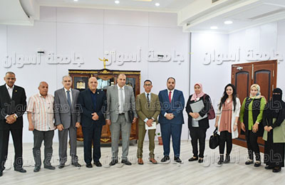 إستقبل الأستاذ الدكتور/ أيمن محمود عثمان- رئيس جامعة أسوان- اليوم الإثنين وفد الجهاز المركزى للتنظيم والإدارة بمكتب سيادته بالمبنى الإدارى الجديد، وذلك بحضور الدكتور/ لؤى سعد الدين نصرت- نائب رئيس الجامعة لشئون التعليم والطلاب- والسيد/ طارق الصادق- الأمين العام للجامعة- والسيد/ محمود سنوسى- مدير عام الموارد البشرية بالجامعة.