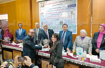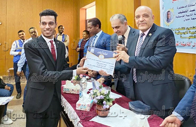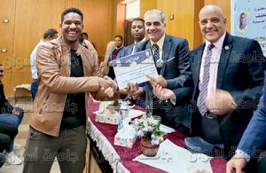 وفى ختام الندوة قام الدكتور/ أيمن عثمان ونائب رئيس الجامعة وعميد الكلية بتكريم الطلاب المتميزين بالكلية والمشاركين فى العرض الفنى وفى مبادرة حياة كريمة بالمحافظة.
