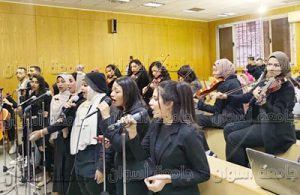 وأوضح الدكتور/ محمد راشد بجهود الطلاب وفريق الكورال بالكلية فى العرض الفنى الذى قدّمه من خلال الأغانى الوطنية التى كانت لها تأثير كبير فى نفوس المصريين التى تغنى بها كبار الفنانين والمطربين الراحلين مثل عبدالحليم حافظ فى أغنية حكاية شعب والسيدة أم كلثوم فى أغانيها الوطنية ومدى تأثيرها فى تشكيل وجدان المواطنين فى مختلف الأزمات التى مرّت بتاريخ مصر الحديث.